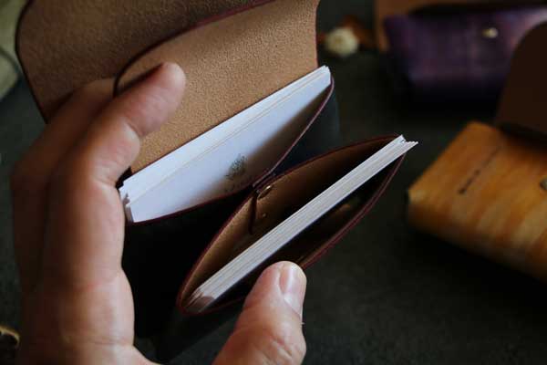 カードポケットは2箇所あり、一般的な名刺で各20枚ほどがちょうど良く入ります。